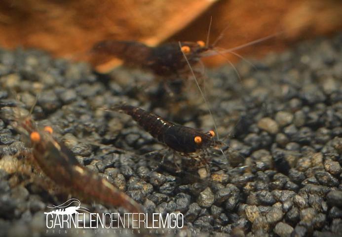 Die Black Sakura OE/AE Garnelen sind eine neue Neocaridina Zuchtform mit Amber Eyes. Ich hätte sie "Black Demon" genannt...