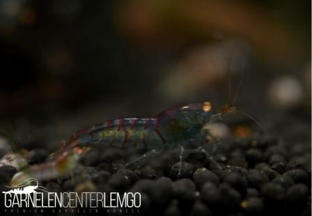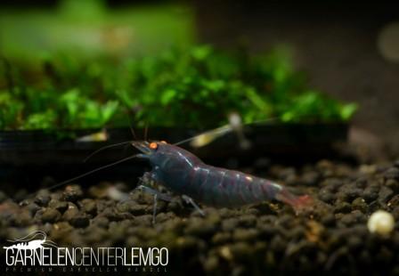 Die roten Tigerstreifen auf der dunkelblauen Garnele sehen einfach super aus. Und die Roten Augen bilden einen tollen Kontrast zur dunkelblauen Körperfarbe.