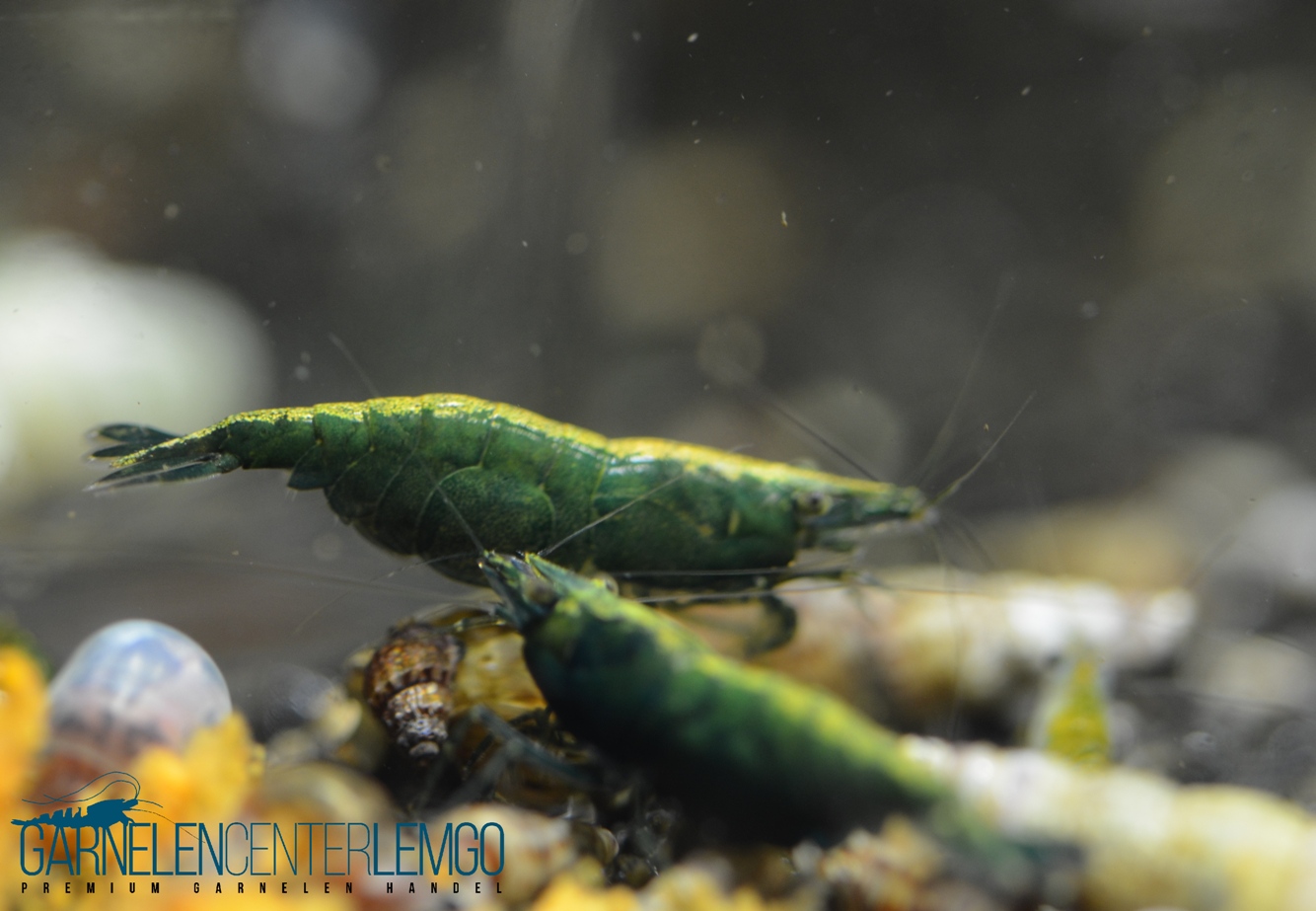 Bei den von uns angebotenen Tieren handelt es sich um deutsche Nachzuchten (DNZ). Die Premium Green Jade haben ein tolles dunkles Grün, der Rückenstrich ist erst im Adulten alter Sichtbar und auch nicht alle Garnelen bekommen einen.