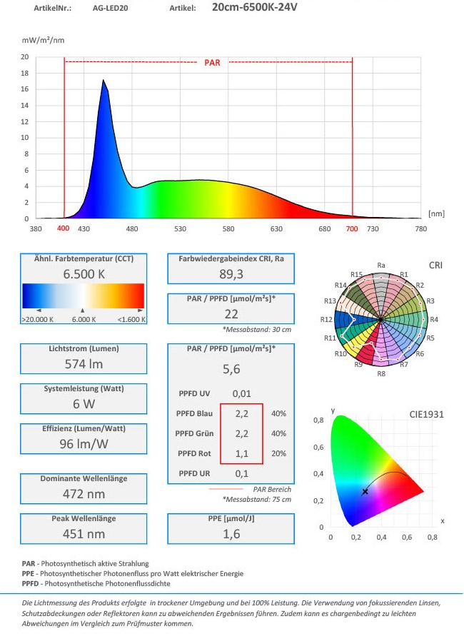 - Lichtfarbe 6500k