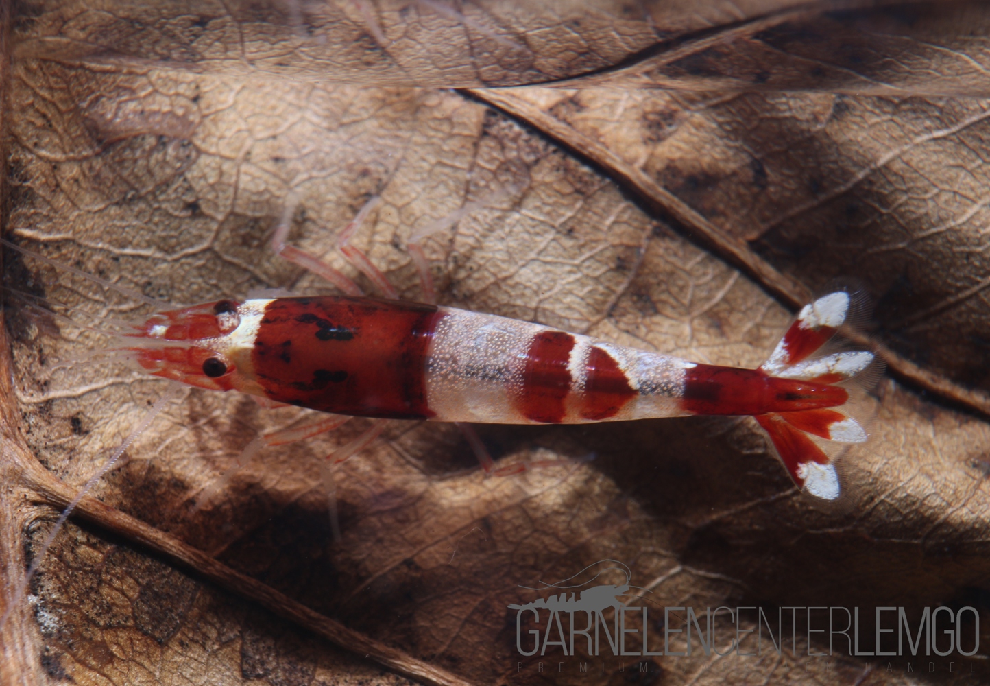 Diese Garnelen haben verschiedene Zeichnungen, wie. z.B. die klassische 3/4 Band Zeichnung, Little Lips, No Entry, Hinomaru. Die Zeichnung kann auch etwas von diesen Varianten abweichen.